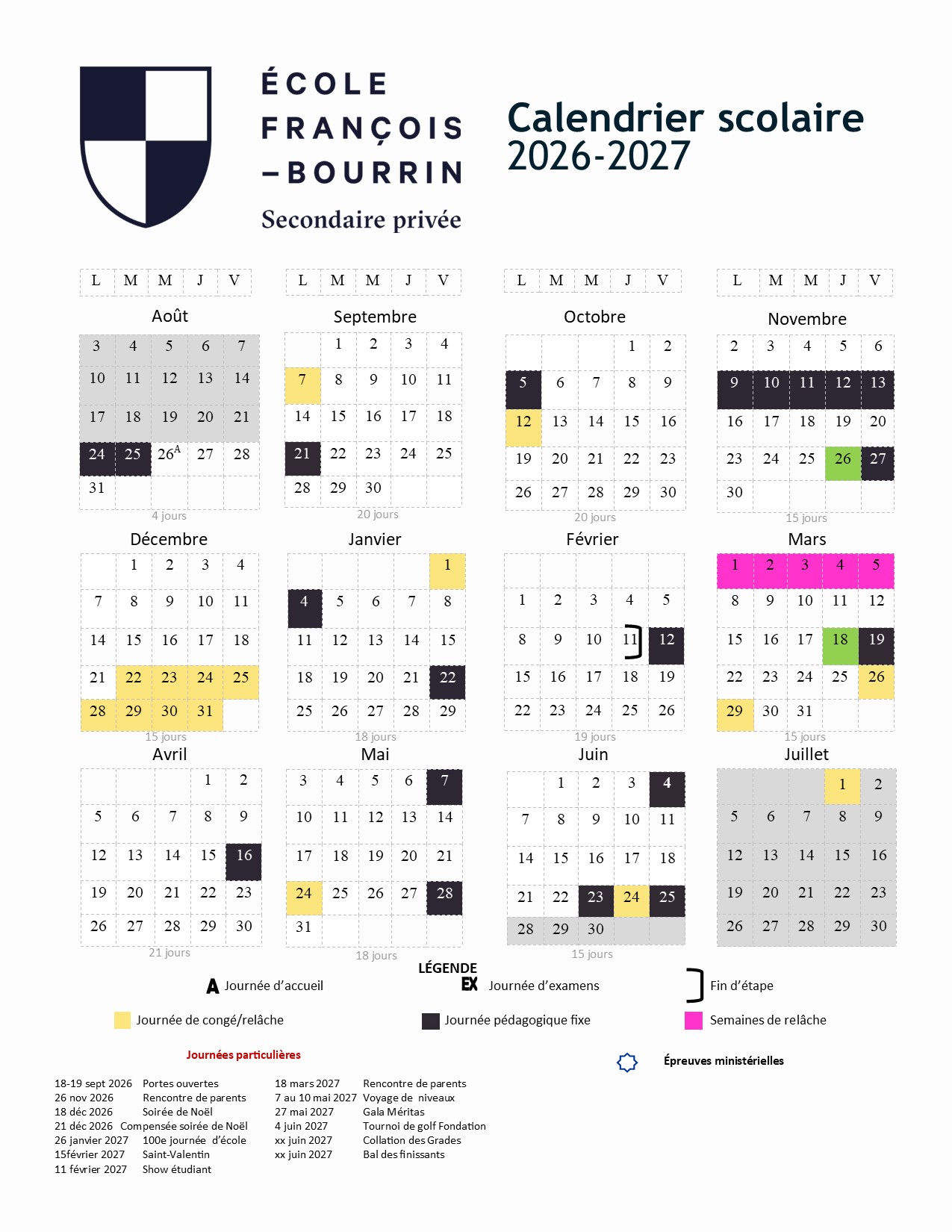 Téléchargez notre calendrier scolaire 2026-2027